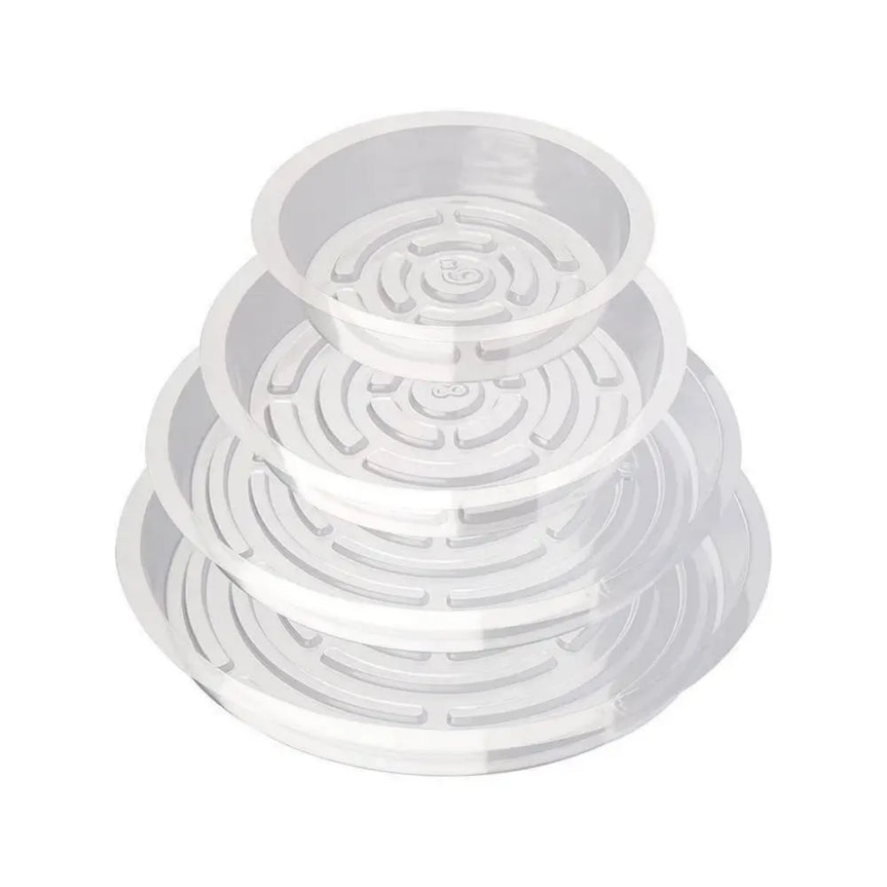 Keep floors, shelves, and carpets clean! These clear plastic plant saucers collect excess water and prevent soil spillage from potted plants.