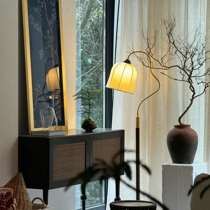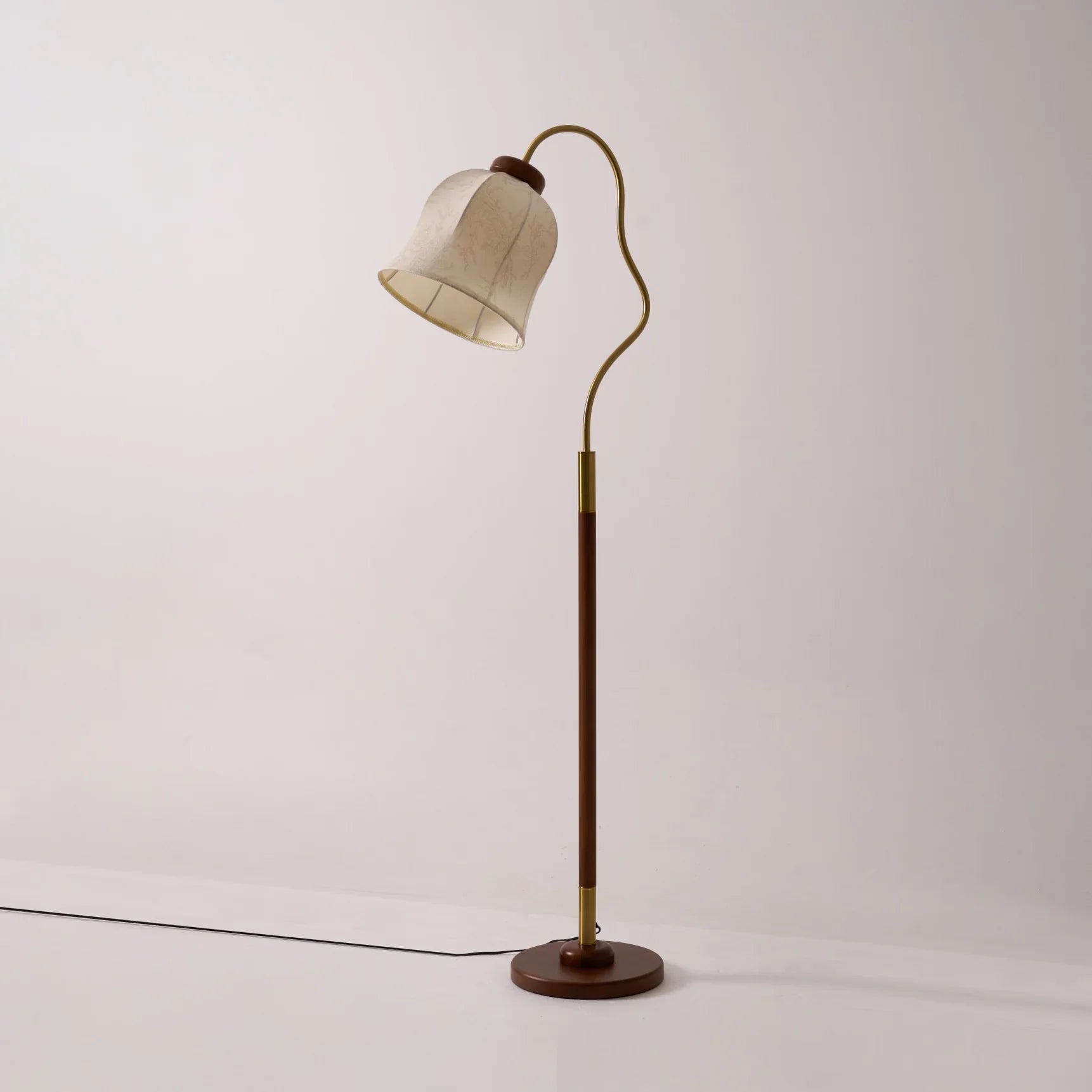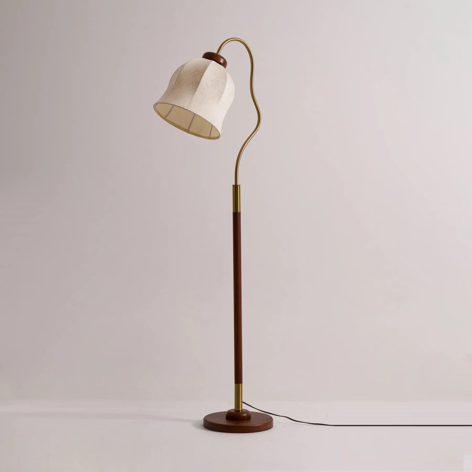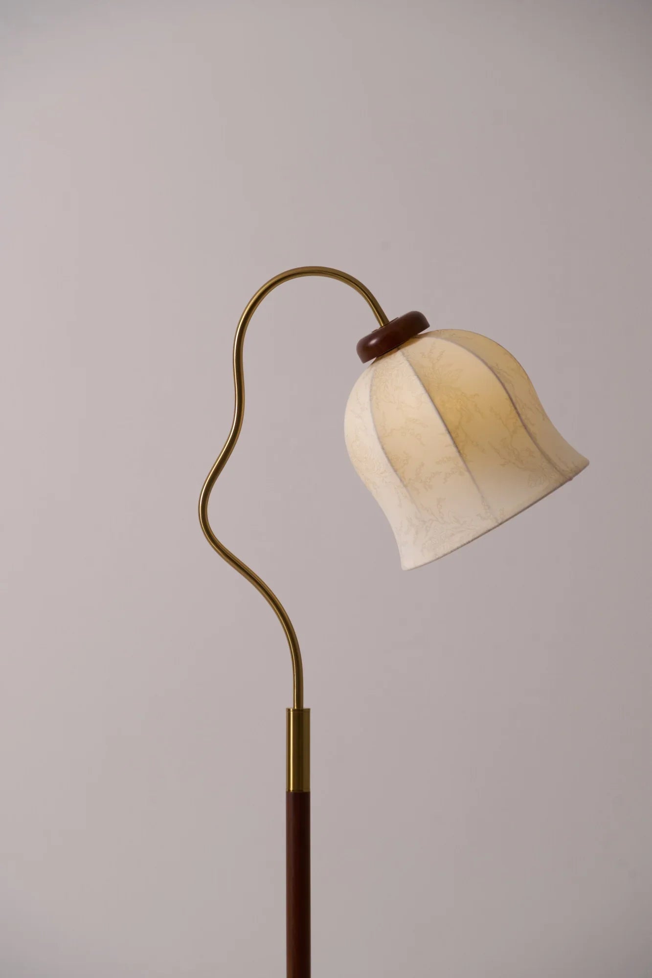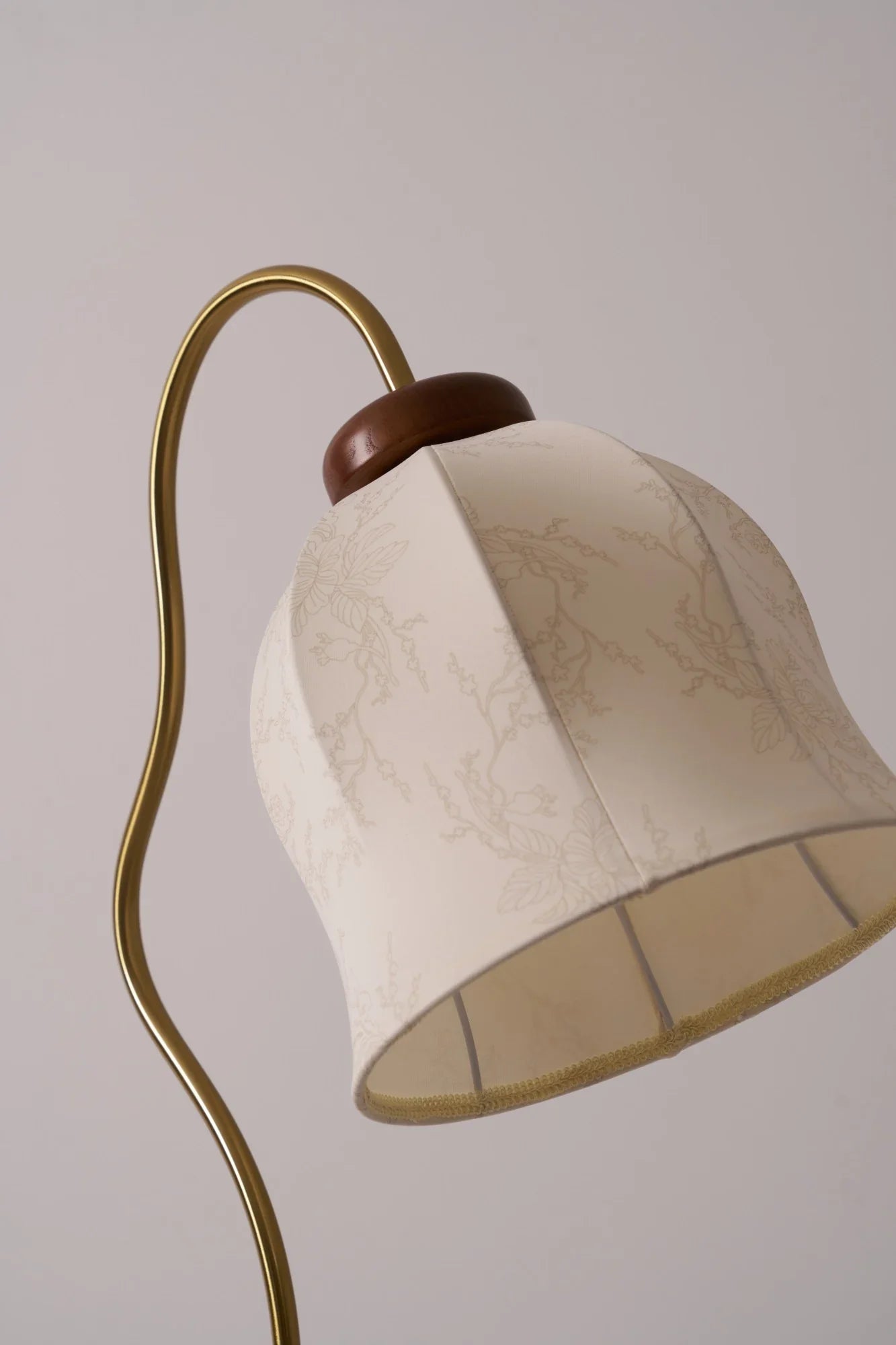 The Bellvine Floor Lamp brings a touch of nostalgic charm and organic elegance to any space. Featuring a flowing, curved brass stem, walnut wood accents, and a bell-shaped fabric shade with delicate floral patterns, it casts a warm, vintage-inspired glow. Ideal for cozy reading corners, classic interiors, or softly lit lounges, the Bellvine blends graceful curves and timeless textures to create a refined atmosphere full of character and warmth.
