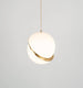 The Crescent Pendant Lamp is an illuminated Opal sphere sliced in half to reveal a crescent-shaped brushed Brass fascia. Crescent seamlessly combines the solid and the opaque making this perfect in any setting.
