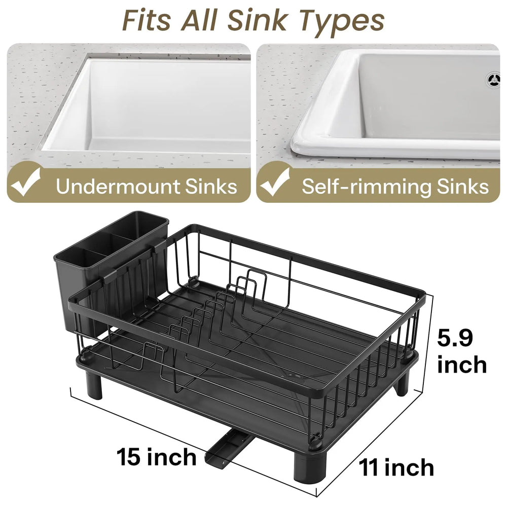Measuring just 15" L x 11" W x 5.9" H, this slim drying rack fits neatly on any countertop or sink ledge. Holds up to 10 plates, bowls, and cups—ideal for apartments, RVs, dorms, or cozy kitchens.
