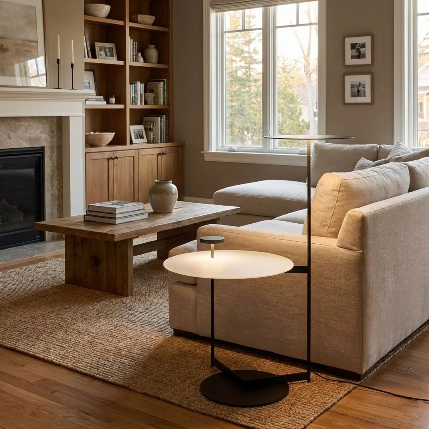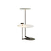 The Flat floor lamp with either a simple or double metal pan, a compact disc, or a plate that acts as an auxiliary piece of furniture. When arranged in pairs the smaller matching disc captures the reflected light within the larger pan thus creating a focus of softer grouped lighting that lights both space as well as the lightβs own surfaces.