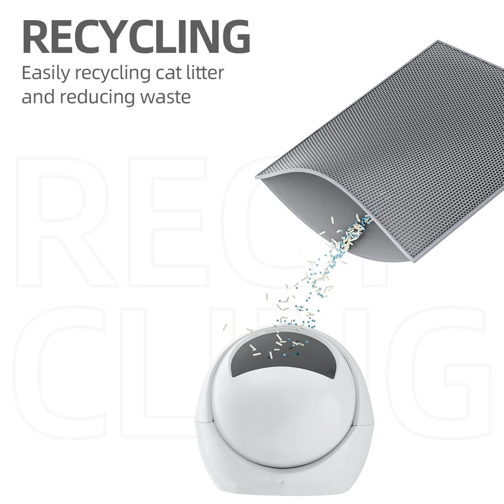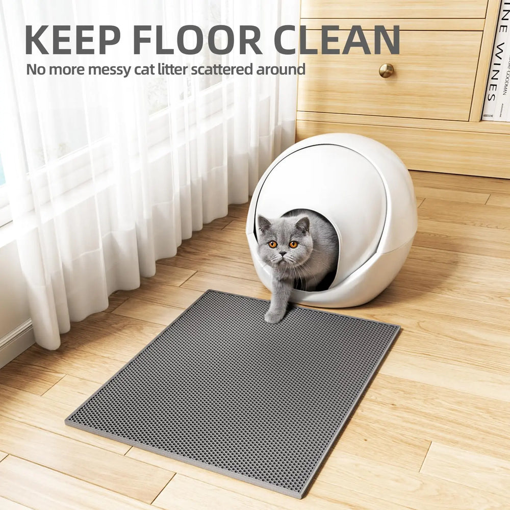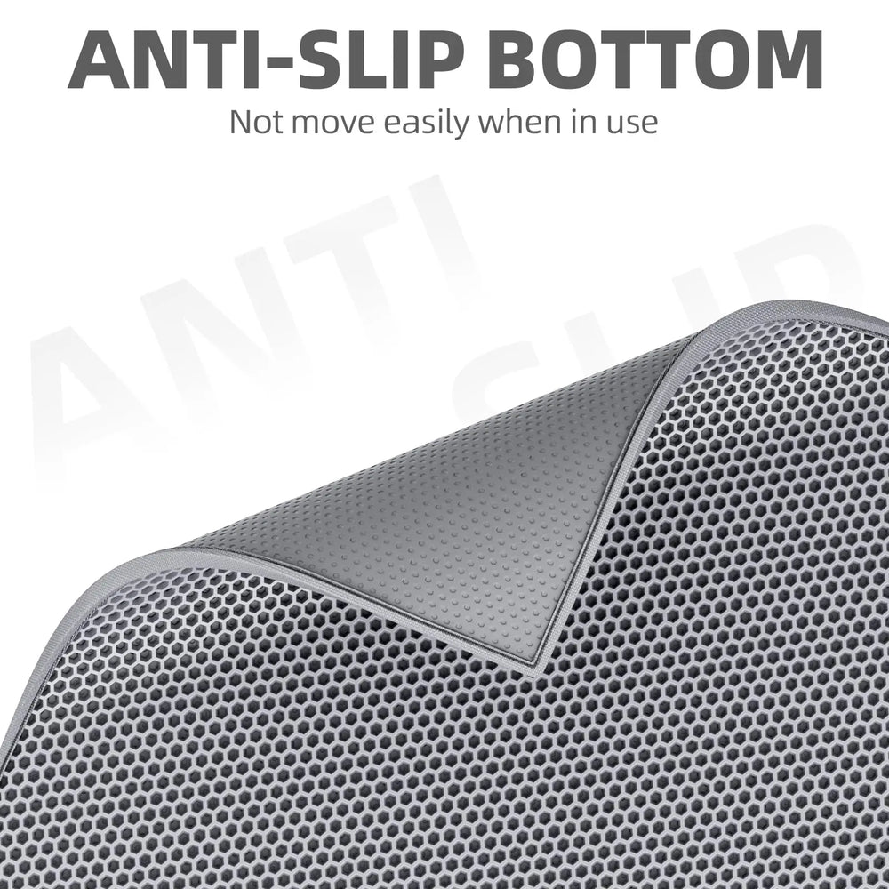 Our dual-layer honeycomb design captures litter in the top grid while the bottom layer securely holds it. Works with all litter types: clumping, crystal, and pellet. Keep your floors clean and litter-free!