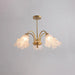 This mottled rich clear shaded Eight Light Chandelier offers an attractive, delicate design featuring shades mouth blown of fine art glass. Lily shades are suspended from gracefully curved arms in this fixture finished by hand in golden iron frame.