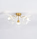 This ceiling lamp is made of leaf-shaped frosted glass. The diffused light is soft and harmonious, perfect for illuminating your interior. Repair is not visible on one of the crystals, marks of time are consistent with the age of the object. Unique design object.