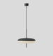 Model 2065 consists of a diffuser made of two joined opalescent saucers, suspended from the ceiling with a black-painted aluminum canopy. The simplicity of designer elliptical design and the lightness of the materials make for a seemingly weightless luminaire.