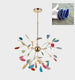 This is a luxurious agate chandelier. The natural agate rough is sliced, polished, perforated, and made. The agate is brightly colored and has a smooth surface. It has a strong light transmission and no glare.