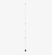 This splendid lamp is an ode to refined minimalism. The lamp features a pull cable with three conical metal shades mounted on the streamlined silhouette which can be anchored to the ceiling. A conical floor counterweight varnished in matte black provides visual and structural balance. Light is provided by circular LED lights equidistantly spaced along the silhouette. This lamp makes for a charming addition to contemporary homes for an intimate ambient light effect.Β